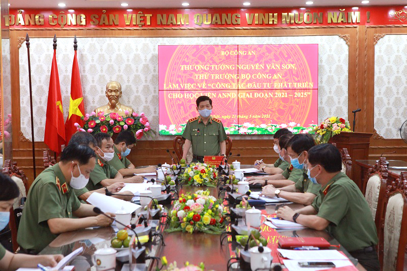 Thứ trưởng Nguyễn Văn Sơn làm việc về “Công tác đầu tư phát triển cho Học viện An ninh nhân dân giai đoạn 2021-2025”