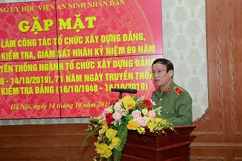 Chiều 16/10, tại Học viện An ninh nhân dân (ANND), Đảng ủy Học viện ANND tổ chức chương trình gặp mặt cán bộ làm công tác tổ chức xây dựng Đảng, công tác kiểm tra, giám sát nhân kỷ niệm 89 năm Ngày tr...