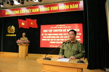 Chiều 23/3/2018, tại Hội trường lớn, Học viện An ninh nhân dân tổ chức buổi học tập chuyên đề năm 2018 về “Xây dựng phong cách, tác phong công tác của người đứng đầu, của cán bộ, đảng viên trong học t...