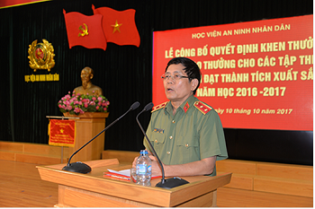 Ngày 10/10/2017, Học viện An ninh nhân dân long trọng tổ chức công bố các quyết định và trao thưởng cho các tập thể, cá nhân trong Học viện đạt thành tích xuất sắc năm học 2016 - 2017.