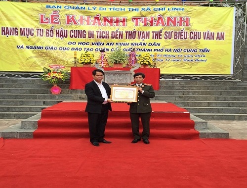 Đoàn đại biểu Học viện An ninh nhân dân dự Lễ khánh thành tu bổ các hạng mục công trình tại hậu cung đền thờ Vạn Thế Sư Biểu Chu Văn An