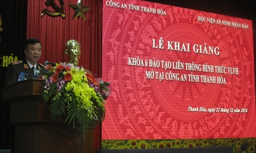 Ngày 22/12/2016, Học viện An ninh nhân dân phối hợp với Công an tỉnh Thanh Hóa tổ chức khai giảng Lớp Liên thông 6 đào tạo đại học hình thức VLVH mở tại Công an tỉnh Thanh Hóa