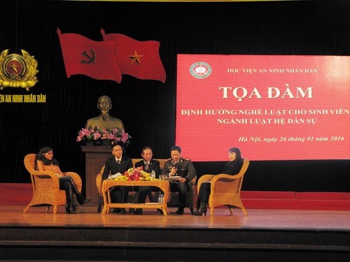 Ngày 26/01/2016, được sự đồng ý của Ban Giám đốc Học viện An ninh nhân dân, Khoa Luật tổ chức Tọa đàm định hướng nghề luật cho sinh viên chuyên ngành Luật hệ dân sự. Tới dự buổi tọa đàm có đồng chí Th...