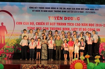 Ngày 14-7-2017, Bộ Công an đã tổ chức chương trình Tuyên dương con cán bộ chiến sỹ đạt thành tích cao năm học 2016 -2017, tặng quà con thương binh, liệt sỹ Công an nhân tổng kết Tháng Hành động vì trẻ...