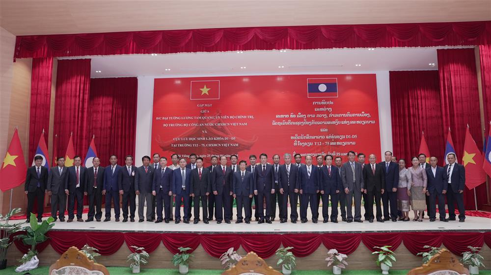 Nhân dịp tháp tùng Chủ tịch nước Lương Cường và Đoàn đại biểu cấp cao Việt Nam thăm cấp Nhà nước tới Cộng hoà dân chủ nhân dân Lào, sáng ngày 25/4/2025, tại Học viện Chính trị Công an Lào, Đại tướng L...