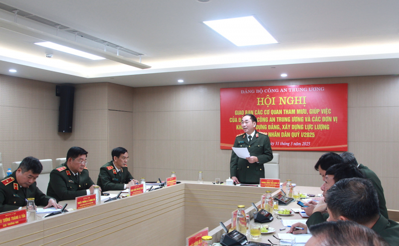 Sáng ngày 31/3/2025, tại Hà Nội, Thượng tướng Trần Quốc Tỏ, Ủy viên Trung ương Đảng, Phó Bí thư Đảng ủy Công an Trung ương, Thứ trưởng Bộ Công an đã chủ trì Hội nghị giao ban các cơ quan tham mưu, giú...