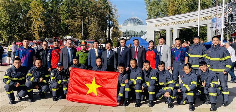 Đội tuyển Công an nhân dân Việt Nam để lại nhiều ấn tượng tại cuộc thi "Lính chữa cháy và cứu nạn, cứu hộ xuất sắc"