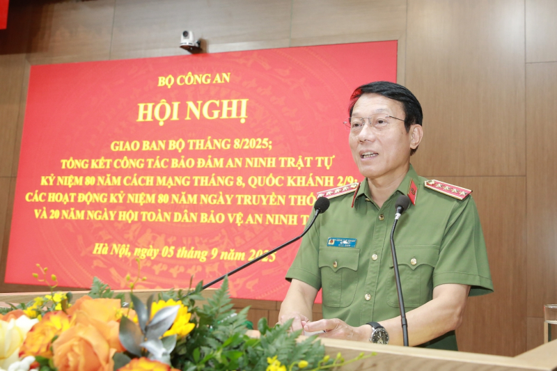 Chiều 5/9, tại Hà Nội, Bộ Công an tổ chức Hội nghị giao ban tháng 8/2025; tổng kết công tác bảo đảm ANTT kỷ niệm 80 năm Cách mạng tháng Tám và Quốc khánh 2/9, các hoạt động kỷ niệm 80 năm Ngày truyền ...
