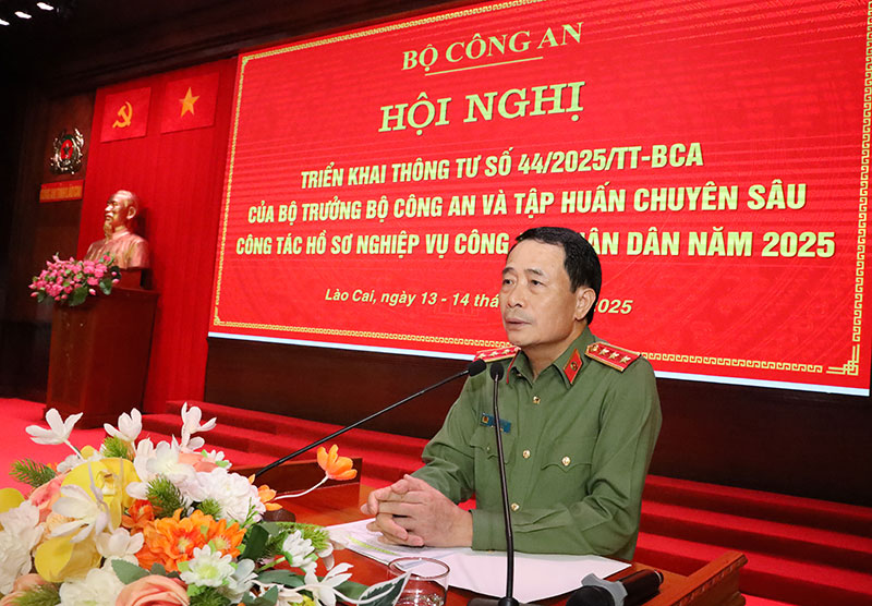 Sáng 13/8, tại Công an tỉnh Lào Cai, Bộ Công an tổ chức Hội nghị triển khai Thông tư số 44/2025/TT-BCA của Bộ trưởng Bộ Công an và tập huấn chuyên sâu công tác hồ sơ nghiệp vụ CAND năm 2025.