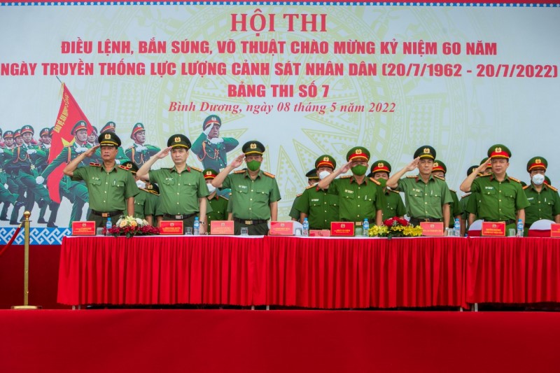 Chiều 9/5, Hội thi điều lệnh, bắn súng, võ thuật Công an nhân dân chào mừng kỷ niệm 60 năm Ngày truyền thống lực lượng Cảnh sát nhân dân, bảng thi số 7 diễn ra tại Bình Dương đã bế mạc.