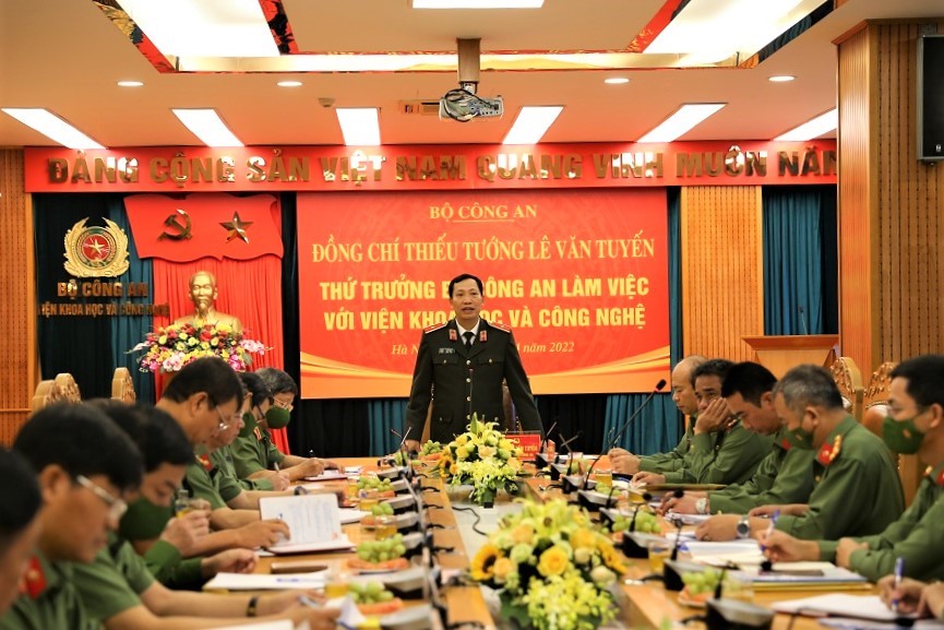Đó là nội dung chỉ đạo của Thiếu tướng Lê Văn Tuyến, Thứ trưởng, Trưởng đoàn công tác của Bộ Công an làm việc với Viện Khoa học và công nghệ Bộ Công an ngày 01/4/2022, tại Hà Nội.
