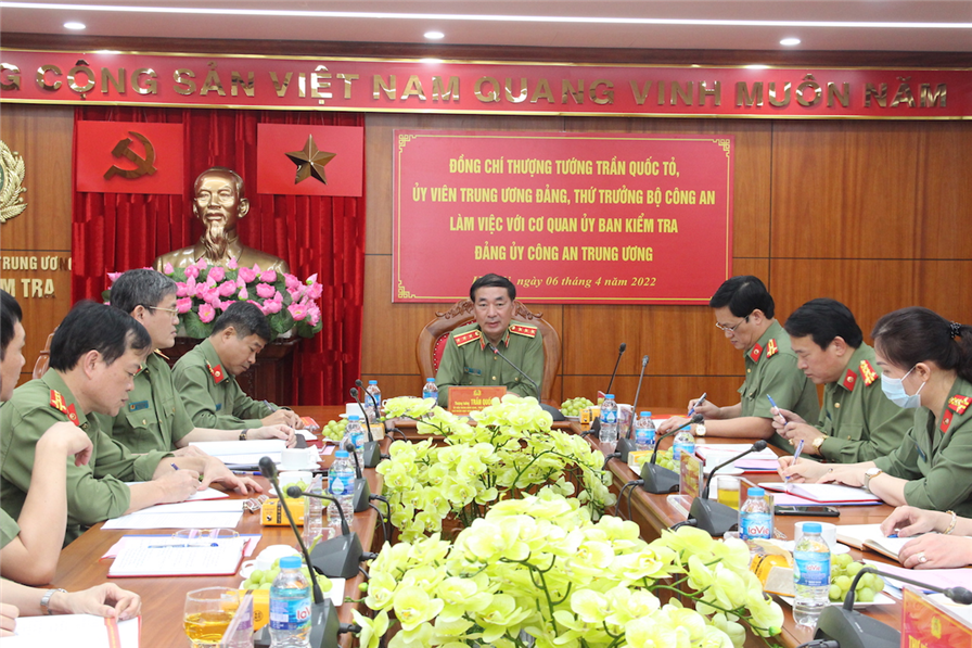 Chiều 06/4/2022, tại Hà Nội, Thượng tướng Trần Quốc Tỏ, Ủy viên Trung ương Đảng, Phó Bí thư Đảng ủy Công an Trung ương, Chủ nhiệm Ủy ban Kiểm tra (UBKT) Đảng ủy Công an Trung ương, Thứ trưởng Bộ Công ...