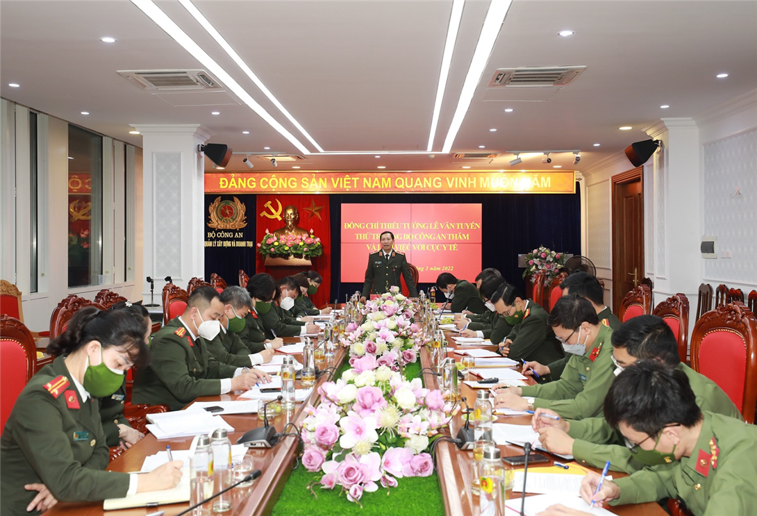 Chiều 14/3/2022, tại Hà Nội, Thiếu tướng Lê Văn Tuyến, Thứ trưởng Bộ Công an cùng Đoàn công tác của Bộ đã đến thăm và làm việc tại Cục Y tế.
