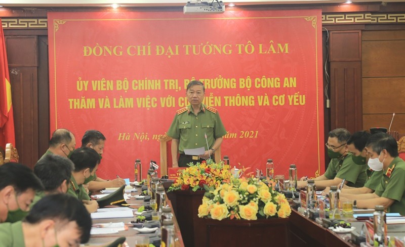 Chiều 13/9, Đại tướng Tô Lâm, Ủy viên Bộ Chính trị, Bộ trưởng Bộ Công an, thành viên Ban Chỉ đạo Quốc gia phòng, chống dịch COVID-19, Trưởng Tiểu ban An ninh trật tự xã hội (ANTTXH) của Ban Chỉ đạo Qu...