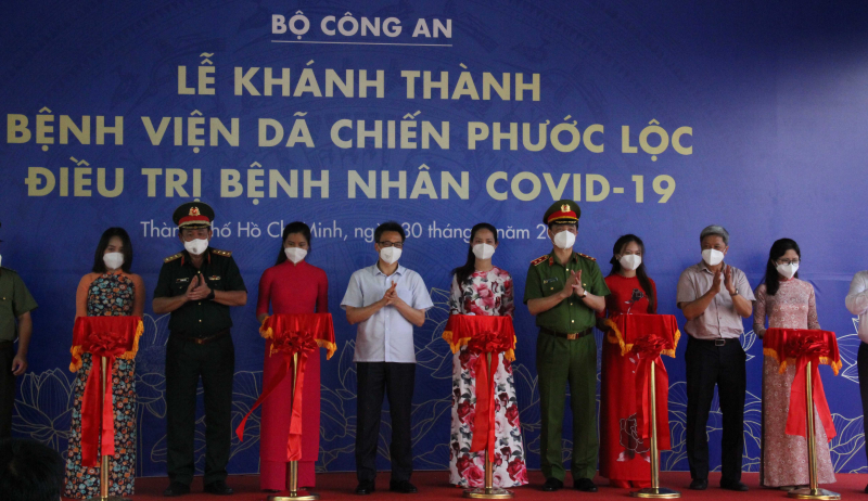 Chỉ sau 1 tuần thi công ngày đêm, ngày 30/8, Bộ Công an đã tổ chức lễ khánh thành, đưa vào hoạt động Bệnh viện dã chiến Phước Lộc điều trị bệnh nhân COVID-19 tại số 17, đường Phạm Hùng, xã Phước Lộc, ...