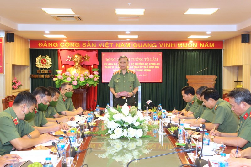 Đại tướng Tô Lâm, Ủy viên Bộ Chính trị, Bí thư Đảng ủy Công an Trung ương, Bộ trưởng Bộ Công an nhấn mạnh tại buổi làm việc với Cơ quan Ủy ban Kiểm tra (UBKT) Đảng ủy Công an Trung ương, tổ chức tại...