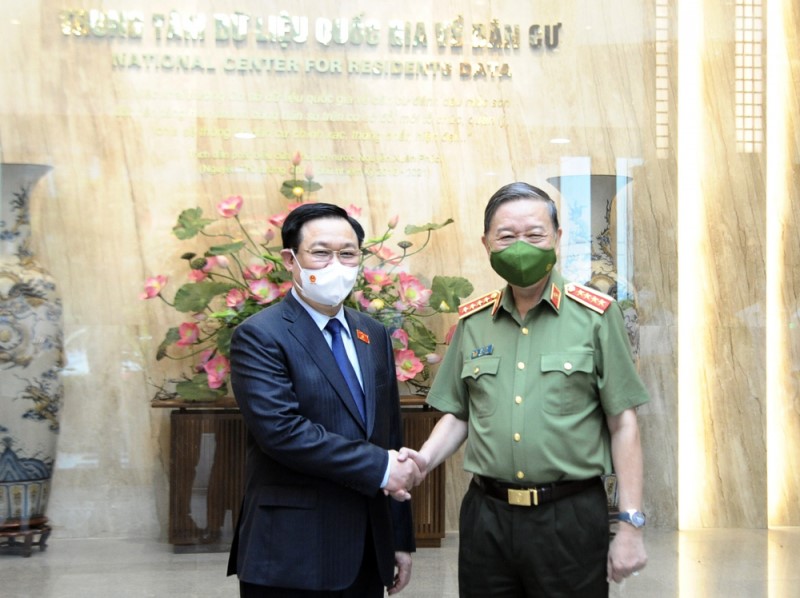 Chiều 27/8, đồng chí Vương Đình Huệ, Ủy viên Bộ Chính trị, Chủ tịch Quốc hội đã đến thăm, làm việc tại Trung tâm Dữ liệu Quốc gia về dân cư, thuộc Cục Cảnh sát Quản lý hành chính về trật tự xã hội (QL...