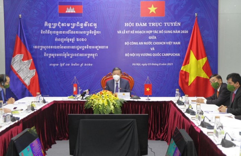 Đó là nội dung trọng tâm cuộc hội đàm trực tuyến giữa Bộ Công an Việt Nam và Bộ Nội vụ Campuchia diễn ra sáng 3/8. Đại tướng Tô Lâm, Bộ trưởng Bộ Công an và ngài Samdech Krolahom Sar Kheng, Phó Thủ tư...