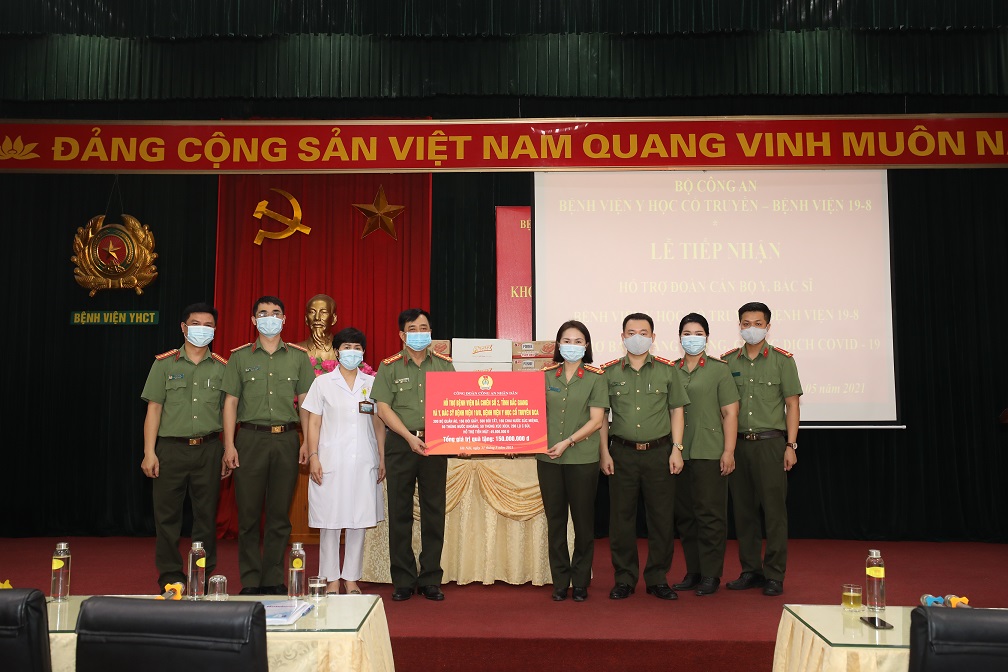 Công đoàn Công an nhân dân trao quà hỗ trợ Bệnh viện Dã chiến số 2 tỉnh Bắc Giang và các y, bác sỹ Bệnh viện 19/8 và Bệnh viện Y học cổ truyền Bộ Công an
