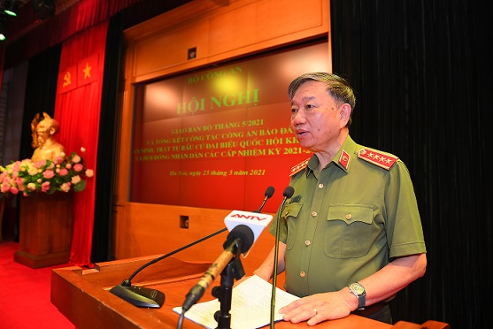 Sáng 25/5/2021, tại Hà Nội, Bộ Công an tổ chức Hội nghị giao ban để đánh giá tình hình, kết quả công tác công an tháng 5/2021 và tổng kết công tác công an bảo đảm an ninh, trật tự (ANTT) bầu cử đại bi...