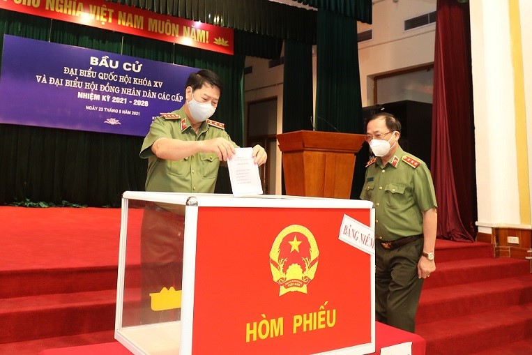 Tướng lĩnh, sỹ quan, cán bộ, chiến sỹ lực lượng Công an nhân dân hân hoan tham gia bầu cử trong ngày hội toàn dân