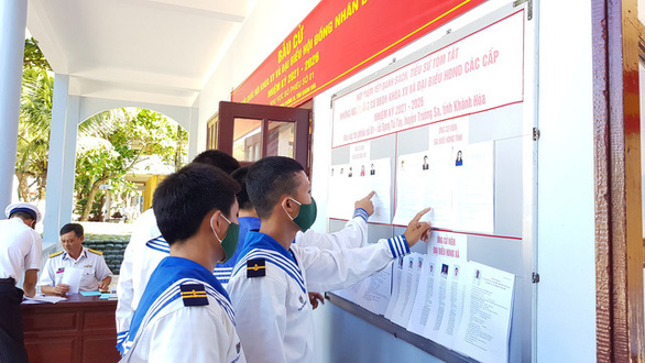 Sáng 16/5, quân và dân ở 20 tổ bầu cử: thị trấn Trường Sa và 2 xã đảo: Sinh Tồn, Song Tử Tây thuộc khối đảo của huyện Trường Sa (tỉnh Khánh Hòa) rộn ràng đi bỏ phiếu bầu cử đại biểu Quốc hội khóa XV v...