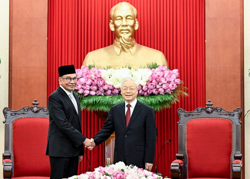 Tổng Bí thư Nguyễn Phú Trọng tiếp Thủ tướng Malaysia Anwar Ibrahim