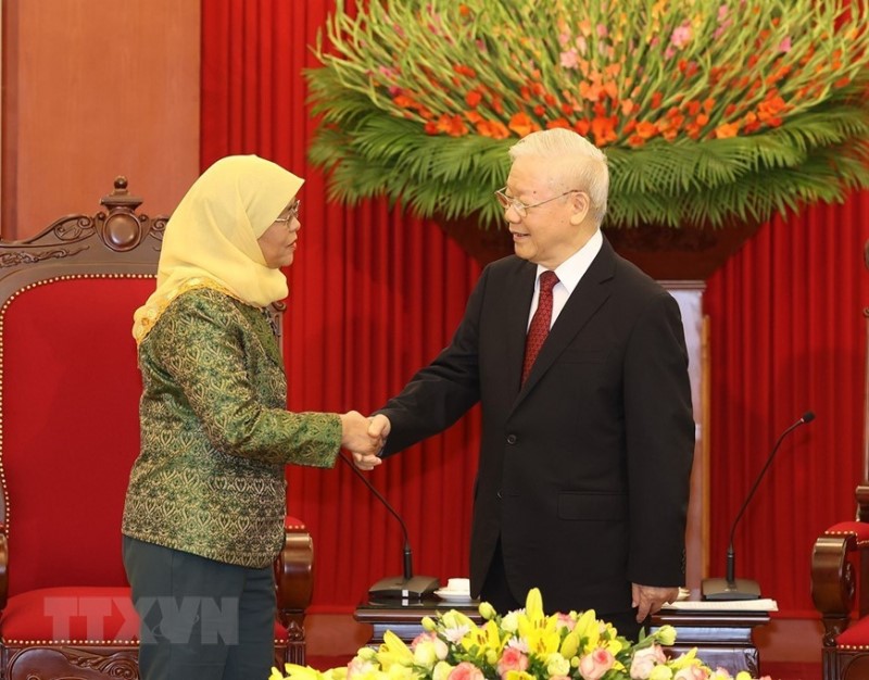 Chiều 17/10, tại Trụ sở Trung ương Đảng, Tổng Bí thư Nguyễn Phú Trọng đã tiếp Tổng thống Singapore Halimah Yacob và đoàn đại biểu cấp cao Singapore nhân dịp thăm chính thức cấp Nhà nước tới Việt Nam.