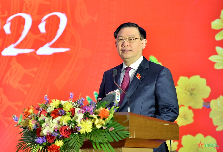 Sáng 7-2, tại Nhà Quốc hội, Chủ tịch Quốc hội Vương Đình Huệ và các đồng chí lãnh đạo Quốc hội gặp mặt đầu xuân các đồng chí Ủy viên Ủy ban Thường vụ Quốc hội; đại biểu Quốc hội hoạt động chuyên trách...