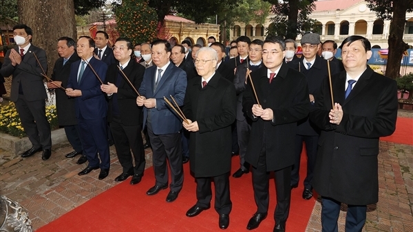 Sáng 4/2, Tổng Bí thư Nguyễn Phú Trọng cùng các đại biểu thành kính dâng hương tưởng nhớ đức Thái tổ triều Lý - người đã định đô ở Thăng Long vào mùa thu năm 1010.