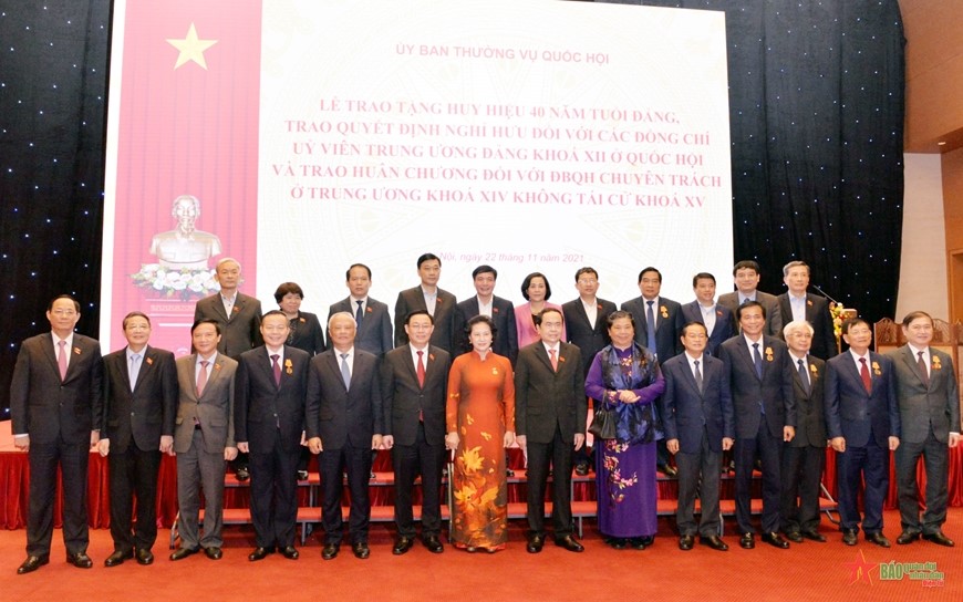 Chiều 22-11, tại Nhà Quốc hội, Đảng bộ cơ quan Văn phòng Quốc hội và Ủy ban Thường vụ Quốc hội tổ chức Lễ trao tặng Huy hiệu 40 năm tuổi Đảng, trao quyết định nghỉ hưu đối với các đồng chí Ủy viên Tru...