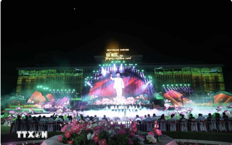 Chương trình nghệ thuật “Đất nước trọn niềm vui” có quy mô lớn, tái hiện lại những giai đoạn lịch sử hào hùng của dân tộc ta, khẳng định tầm vóc vĩ đại của Đại thắng mùa Xuân năm 1975.