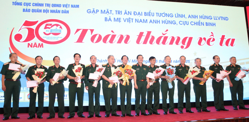 Sáng 16/4, tại Hội trường Thống Nhất (TP Hồ Chí Minh), Tổng cục Chính trị QĐND Việt Nam phối hợp Báo QĐND và một số cơ quan, đơn vị tổ chức gặp mặt, giao lưu 50 tướng lĩnh, Mẹ Việt Nam Anh hùng, Anh h...