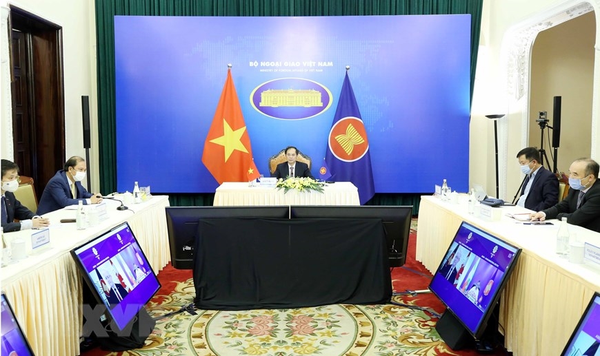 Sáng 3-8, Bộ trưởng Bộ Ngoại giao Bùi Thanh Sơn đã tham dự Hội nghị Bộ trưởng Ngoại giao (PMC) ASEAN - Hàn Quốc theo hình thức trực tuyến. Đây là hoạt động trong khuôn khổ Hội nghị Bộ trưởng Ngoại gia...