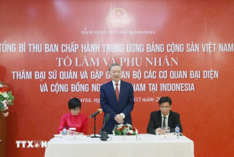 Tổng Bí thư Tô Lâm gặp gỡ cán bộ cơ quan đại diện và cộng đồng người Việt ở Indonesia