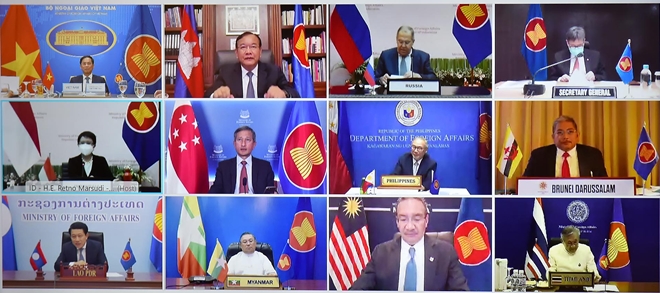 Ngày 6/7, Bộ trưởng Ngoại giao Bùi Thanh Sơn đã tham dự Hội nghị đặc biệt Bộ trưởng Ngoại giao ASEAN-Nga theo hình thức trực tuyến. Bộ trưởng Ngoại giao Indonesia Retno Marsudi và Ngoại trưởng Nga Ser...